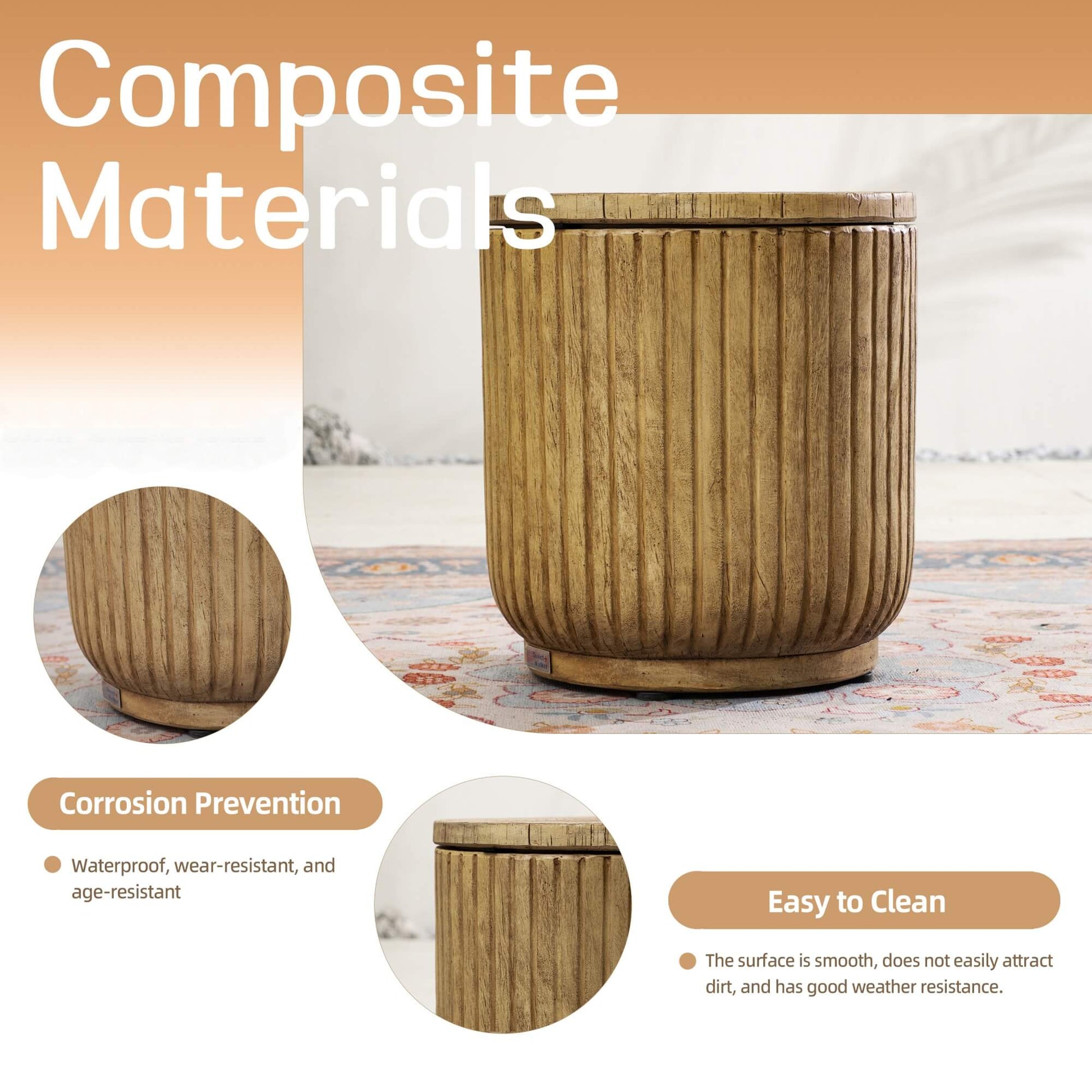This versatile side table combines functionality and style with a unique Terrafab composite material top and a strong iron frame. Measuring 14.56"*16.92", it is crafted through precision molding to achieve a realistic wood-like texture. The painted finish highlights natural wood grain details, making it both visually appealing and durable. More than just a side table, it can be opened and used as an ice bucket, offering multi-purpose convenience for outdoor gatherings and parties.
