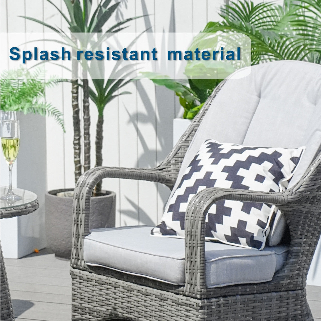 • Materials: PE Wicker, Aluminum Frame, 5mm Tempered Glass