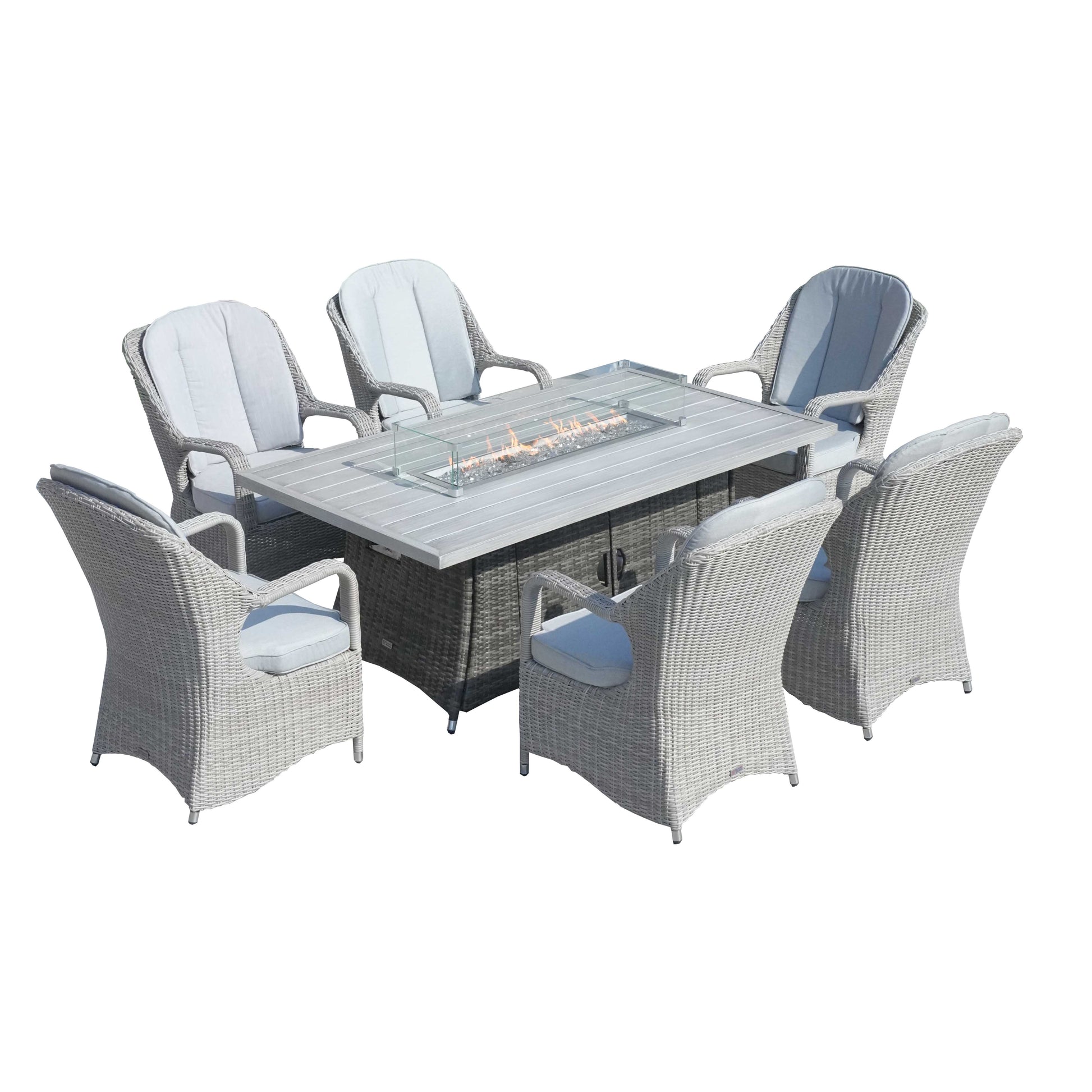 6-Seat Outdoor Fire Pit Dining Set – Rectangle Fire Pit Table (PAG-1106RA+009HL)