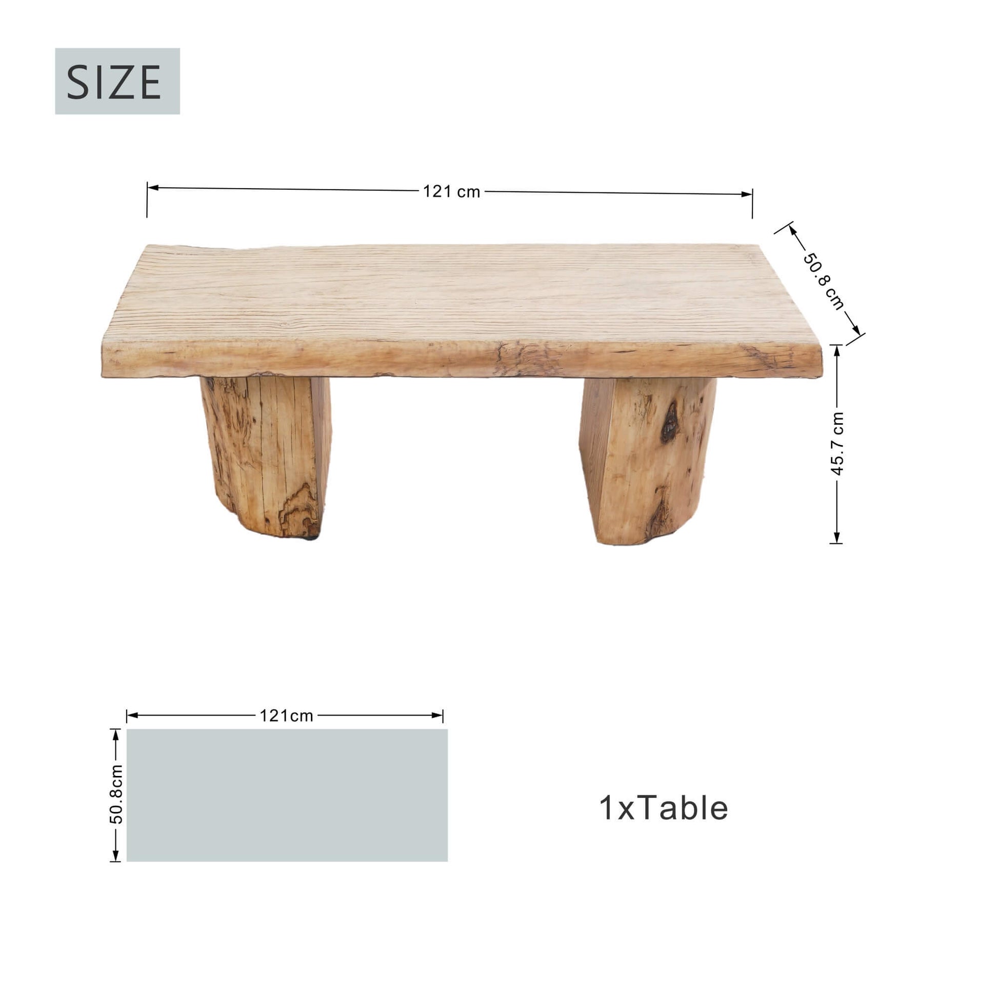 This natural wood-colored coffee table features a durable Terrafab composite material top supported by a sturdy iron frame. Measuring 47.63"*20"*17.99", it is crafted through precision molding with a realistic wood-like design. The painted finish highlights authentic wood grain textures, creating a visually appealing and unique piece. This versatile table can serve as a standalone coffee table or complement other outdoor furniture collections, including wicker, rattan, and HDPE styles, allowing customers to mix and match with their existing patio setup.