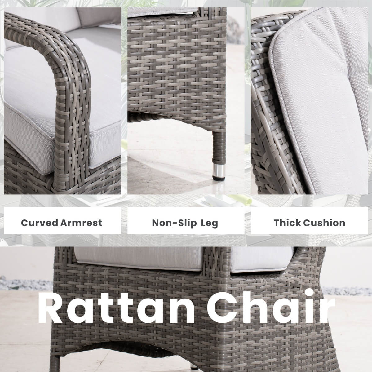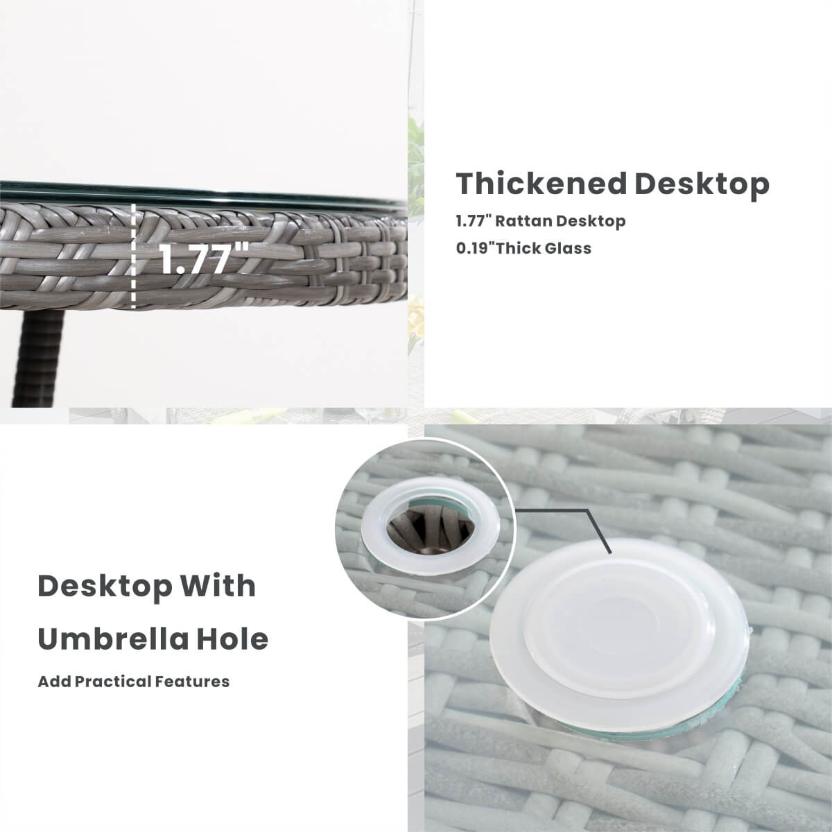 • Materials: PE Wicker, Aluminum Frame, 5mm Tempered Glass