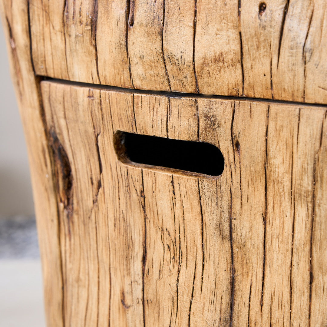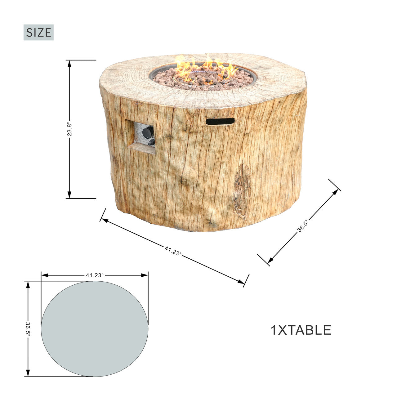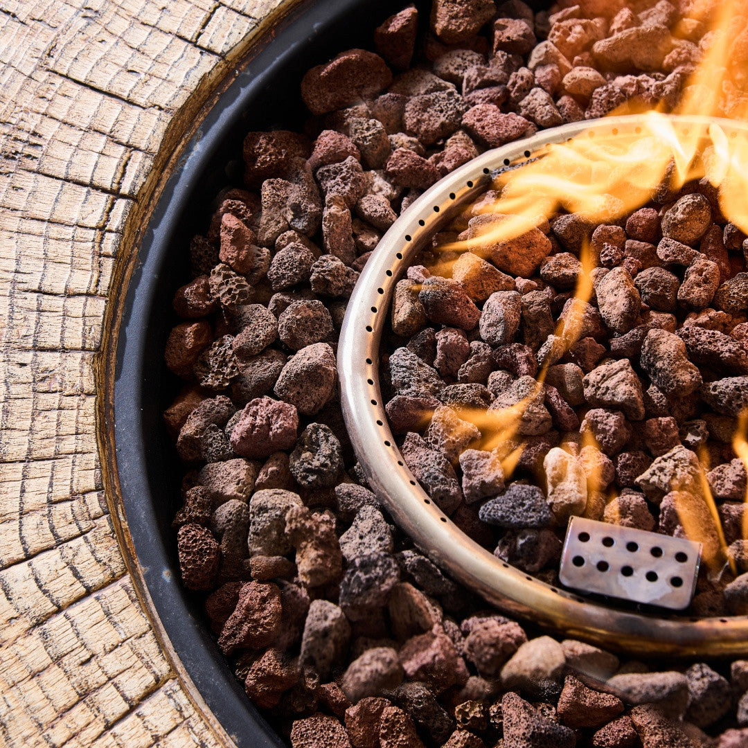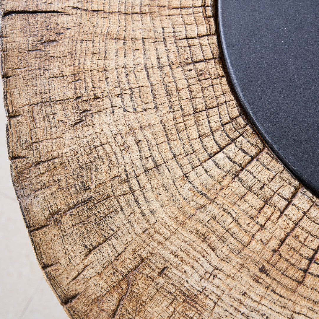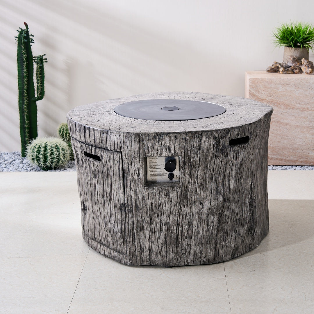 Natural Wood-Like Design: Crafted from Terrafab composite material, this fire pit table replicates the timeless look and feel of weathered wood. Its durability and resistance to the elements make it an ideal outdoor companion.