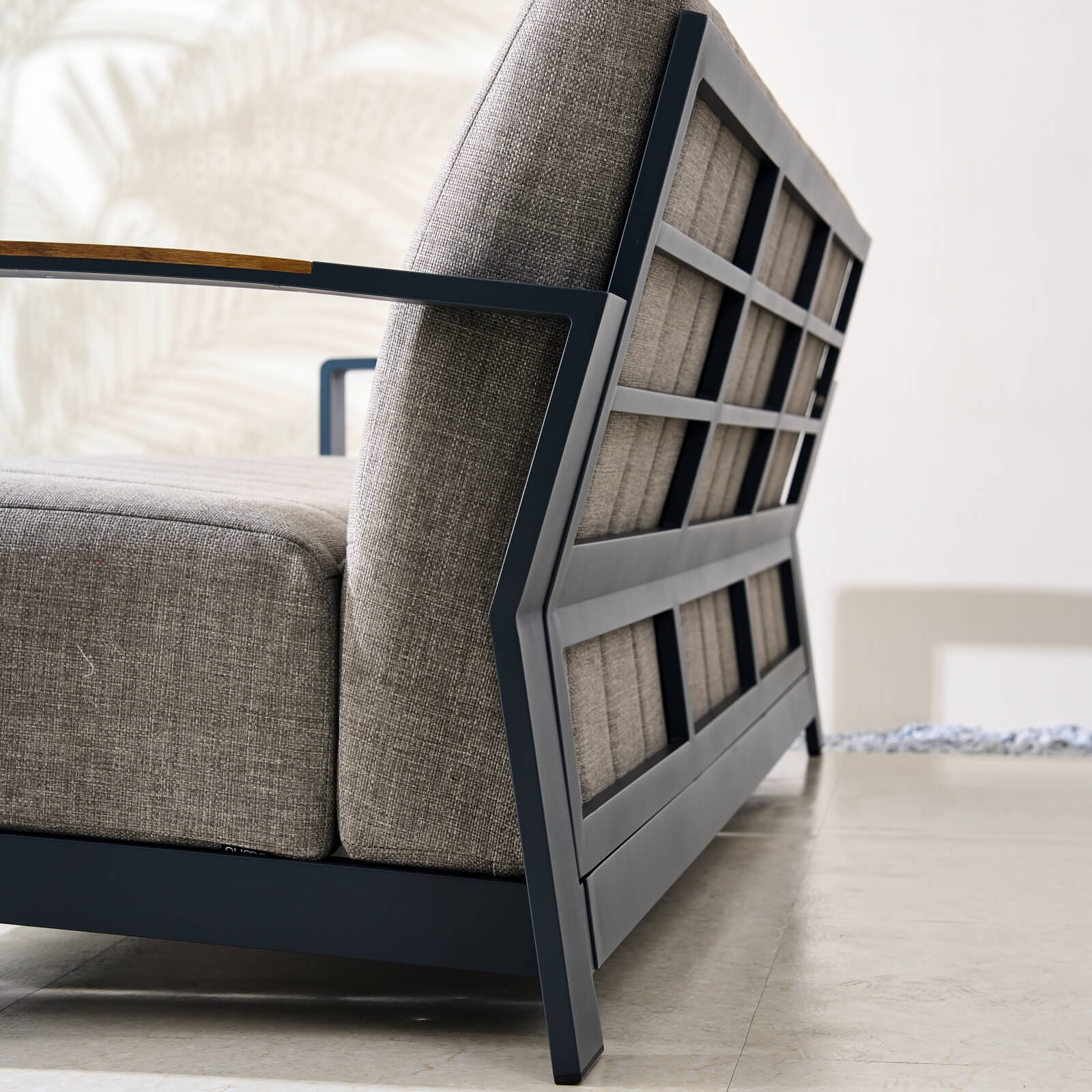 The Numa-Style Lunar 2-Seat Sofa blends refined style with functional comfort, perfect for patios, balconies, or small outdoor nooks. Featuring a sturdy, fully welded aluminum frame with real teak accents and premium fade-resistant cushions, it’s ready to use right out of the box—no assembly needed.