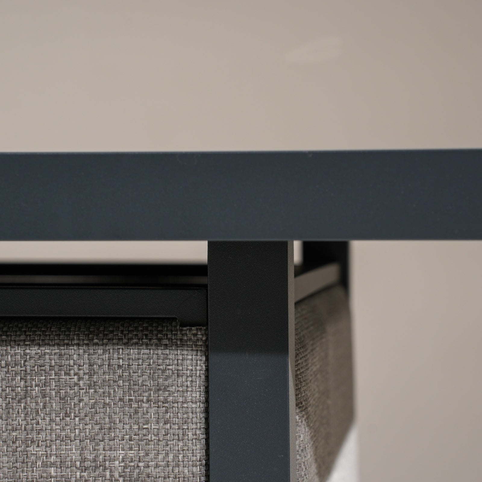The Lunar 56" Coffee Table is a stylish and durable addition to any outdoor lounge. Featuring a heavy-duty aluminum frame with premium fade-resistant fabric accents, it’s designed for lasting performance and a modern aesthetic.