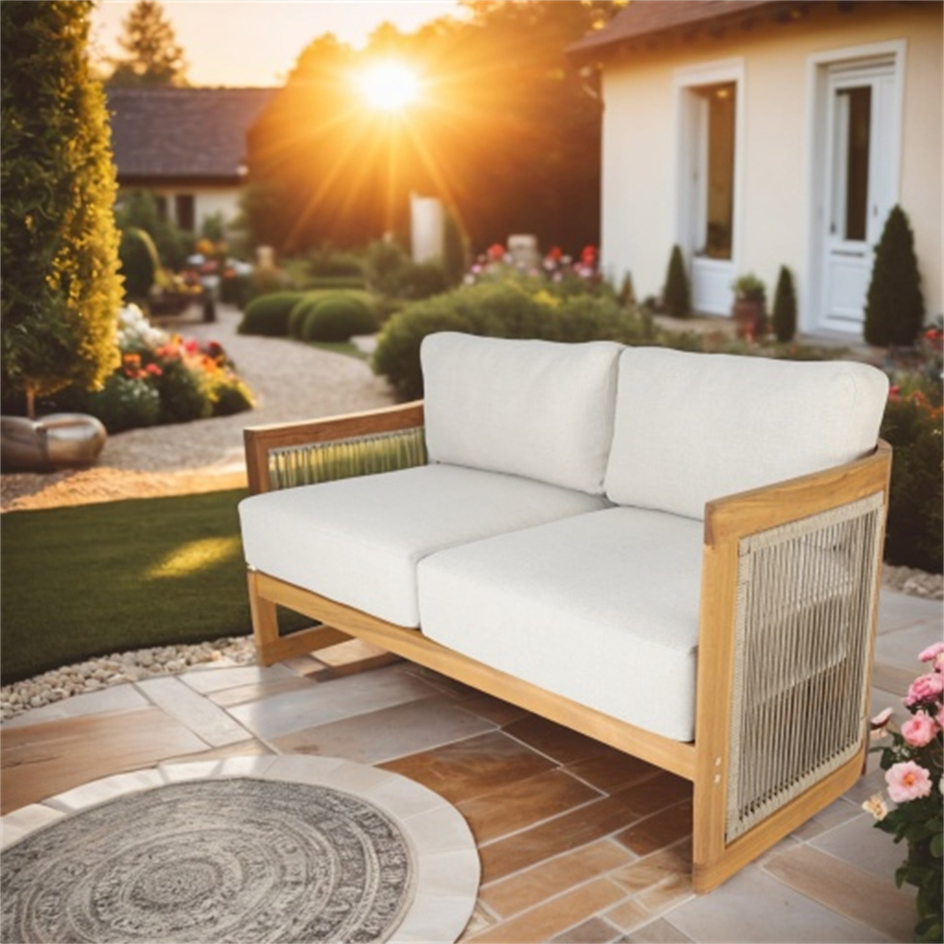 • Care Instructions: Store cushions indoors when not in use; wipe wood surfaces with a damp cloth; apply wood oil seasonally