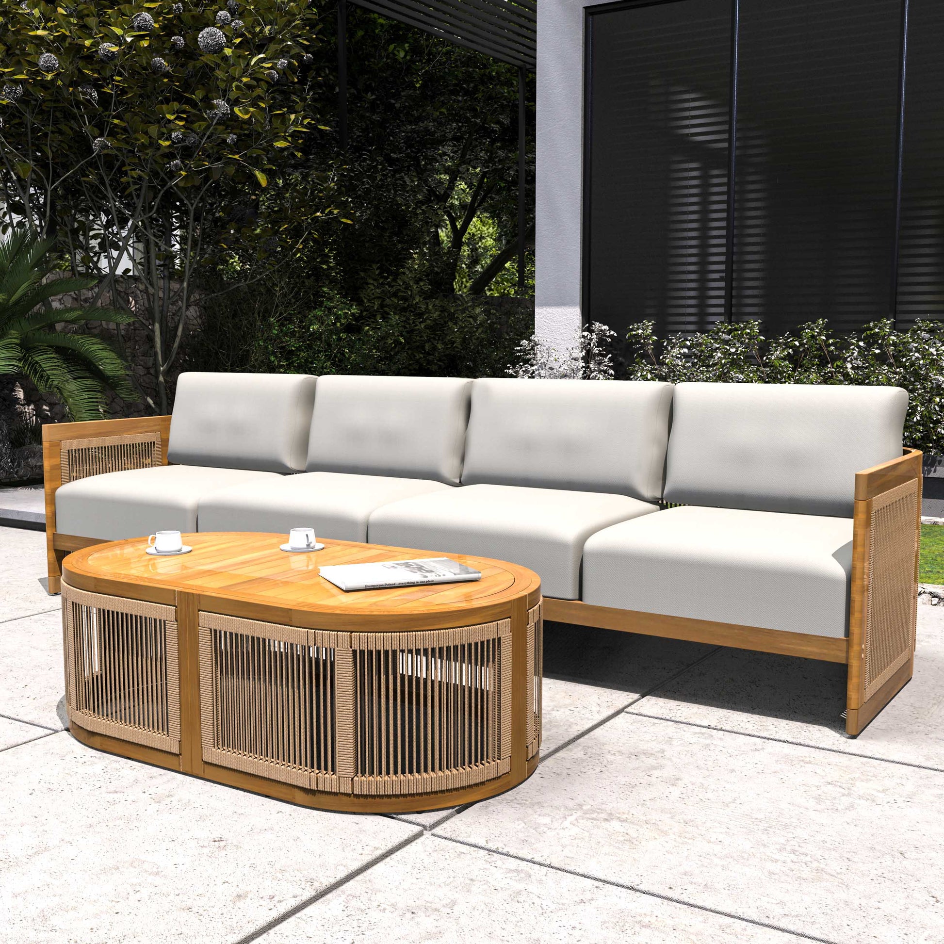 Solid Acacia 4-Seat Sofa with Oval Coffee Table (PAS-2516-LS+RS+OTA)