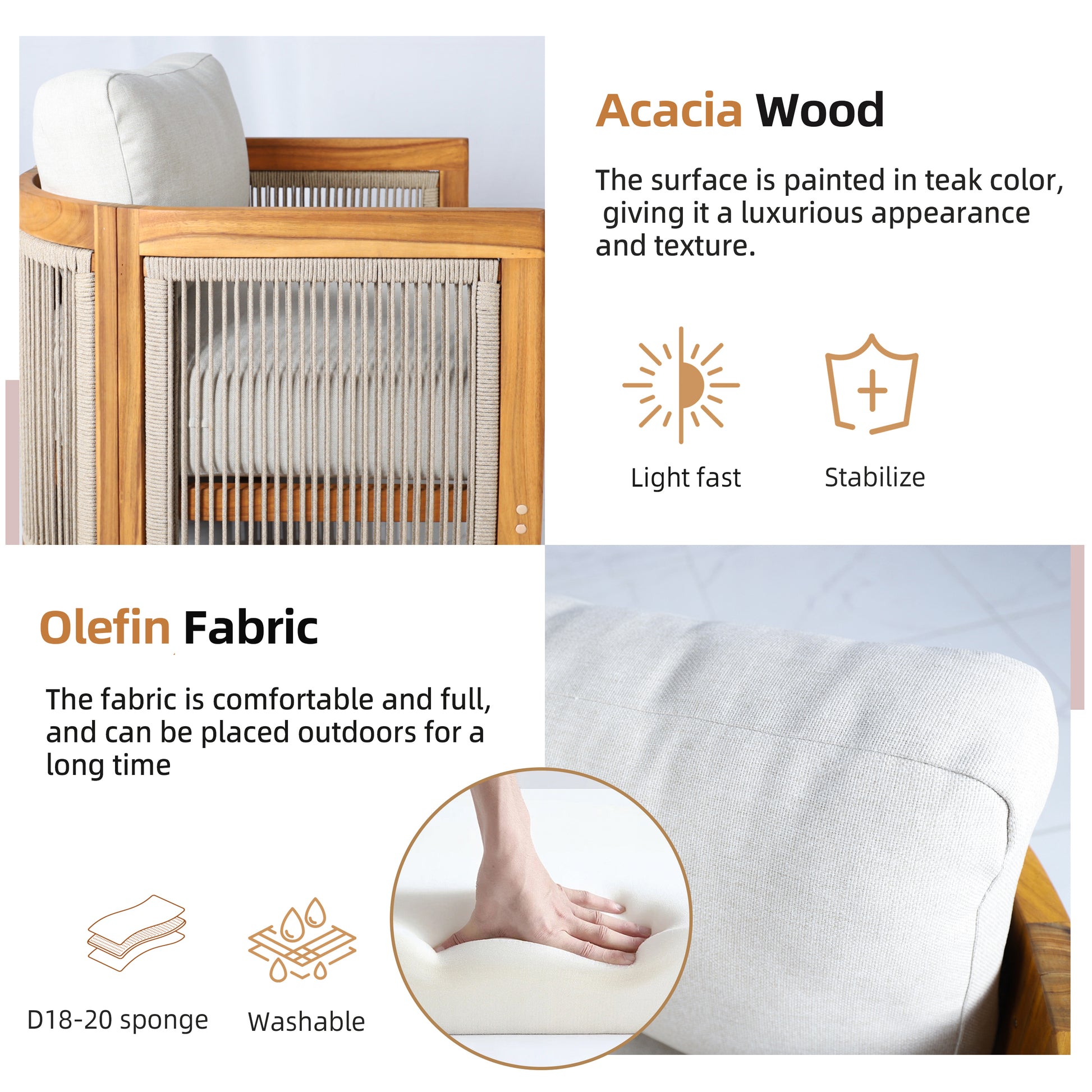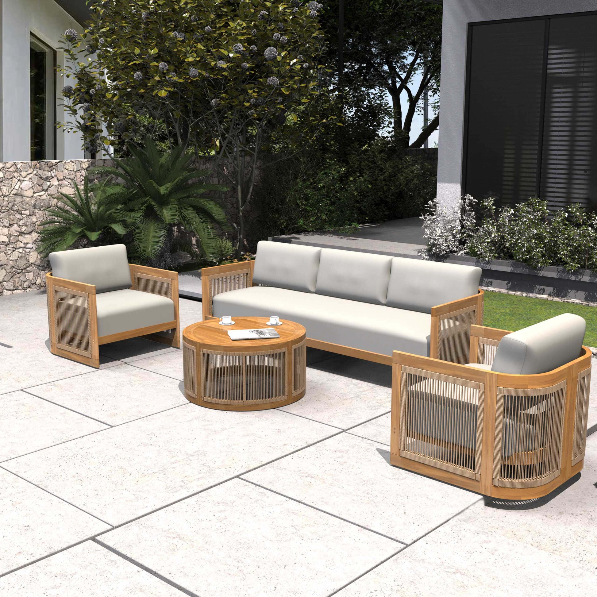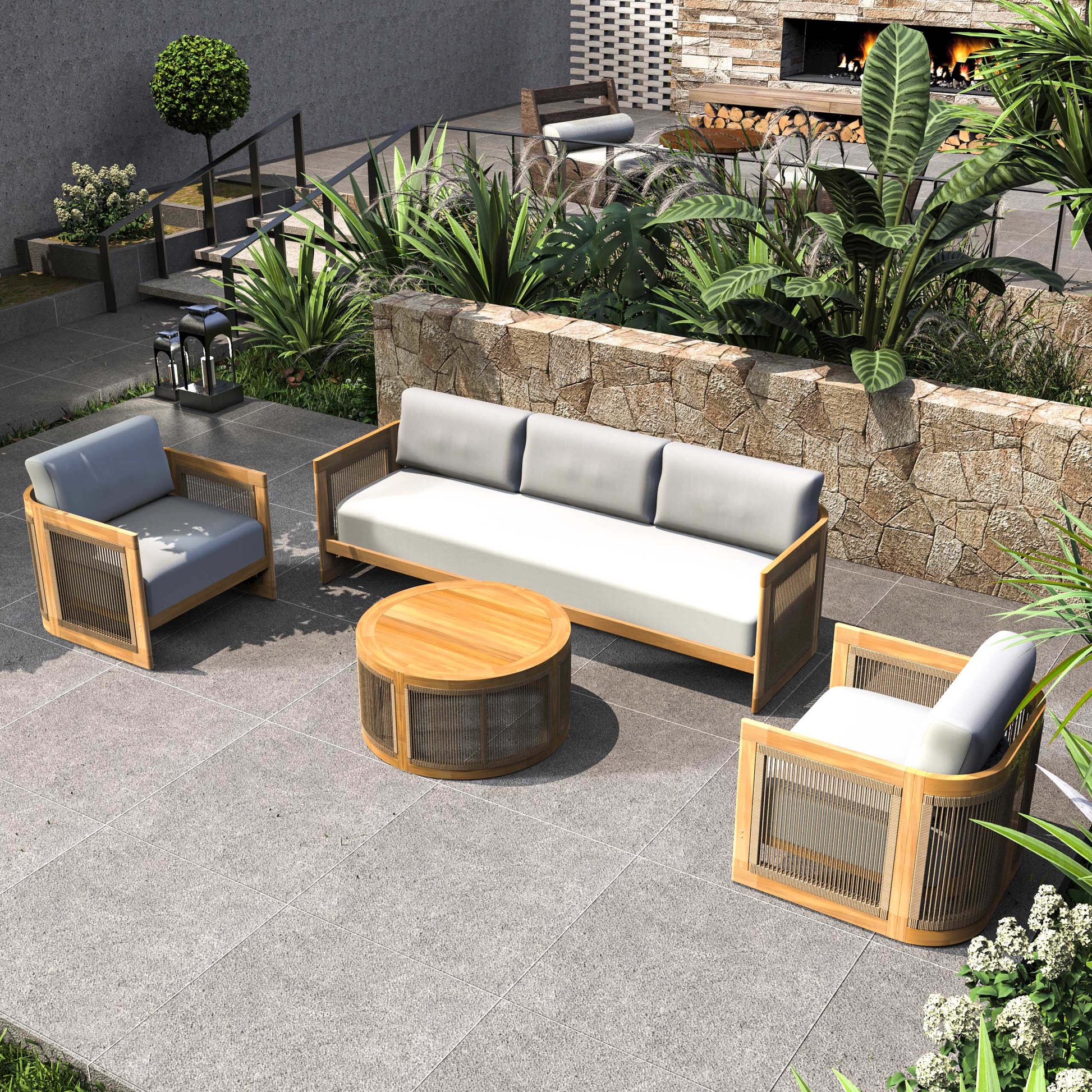 Simple yet stylish, this acacia wood sofa set creates a cozy space for reading, chatting, or relaxing under the sky.