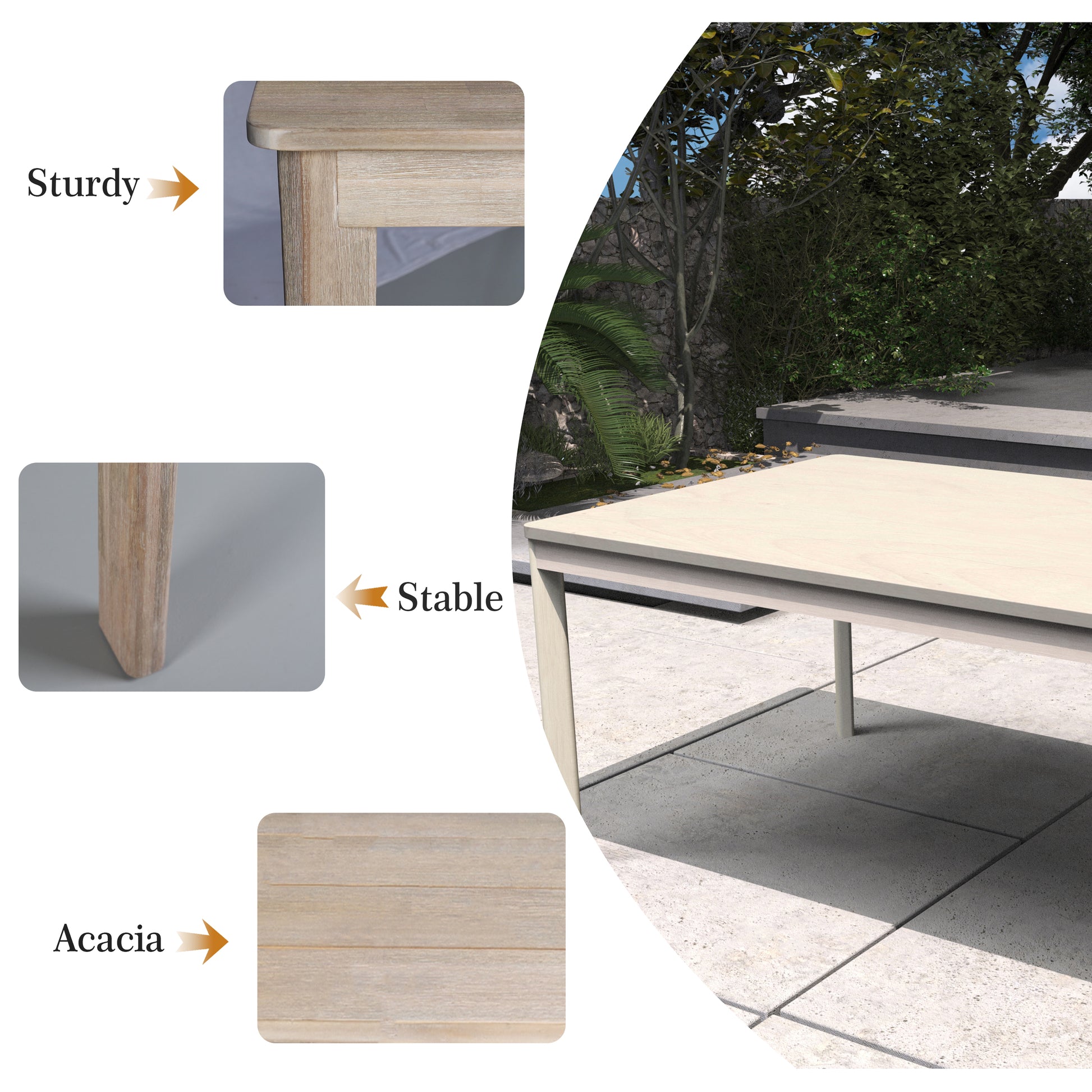 Sturdy, stylish, and built to last—this acacia wood dining table is ready to be the centerpiece of your next gathering.