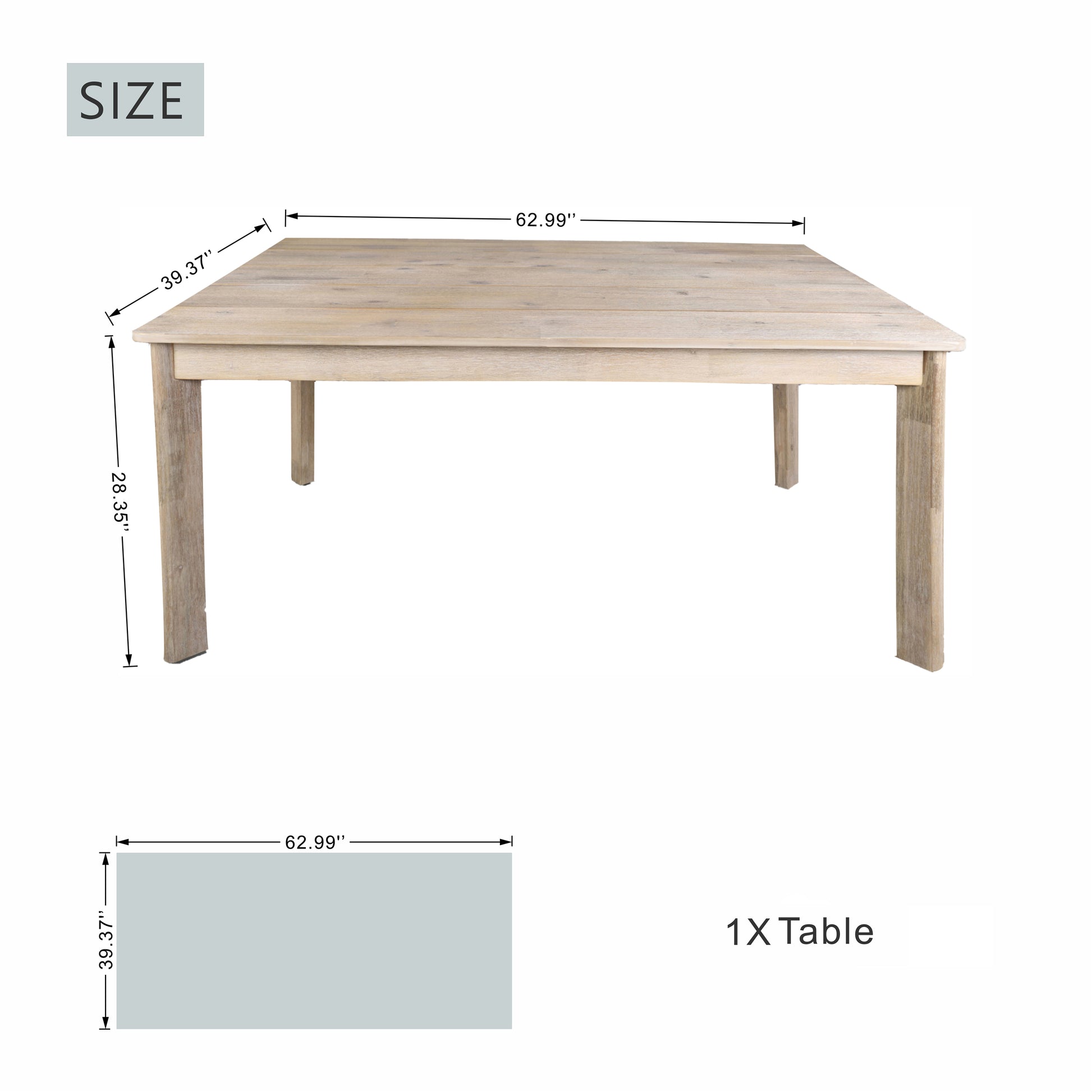 Crafted from premium acacia wood, this rectangular dining table brings natural warmth and timeless durability to your dining space. Measuring 63" in length, it's perfectly sized for family meals or entertaining guests. The solid wood construction ensures a sturdy foundation for everyday use and special occasions alike. Its simple, user-friendly design makes it easy to set up and adapt to various indoor or outdoor settings, offering both functionality and charm.