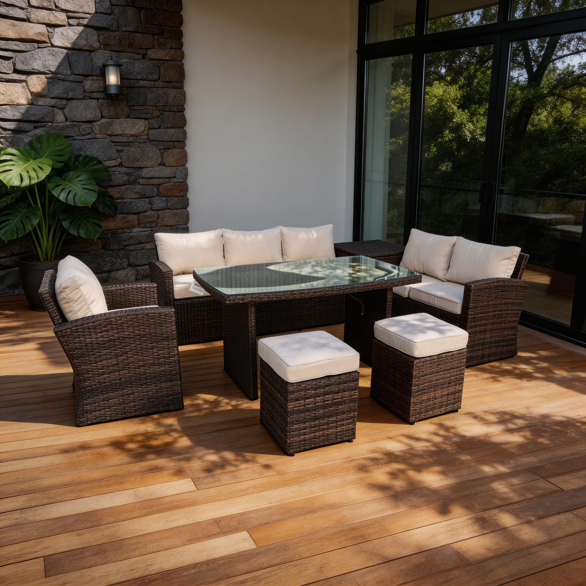 Numa-Style Nord 5-Seater Sofa Set with Rising Dining Table & Coffee Table
