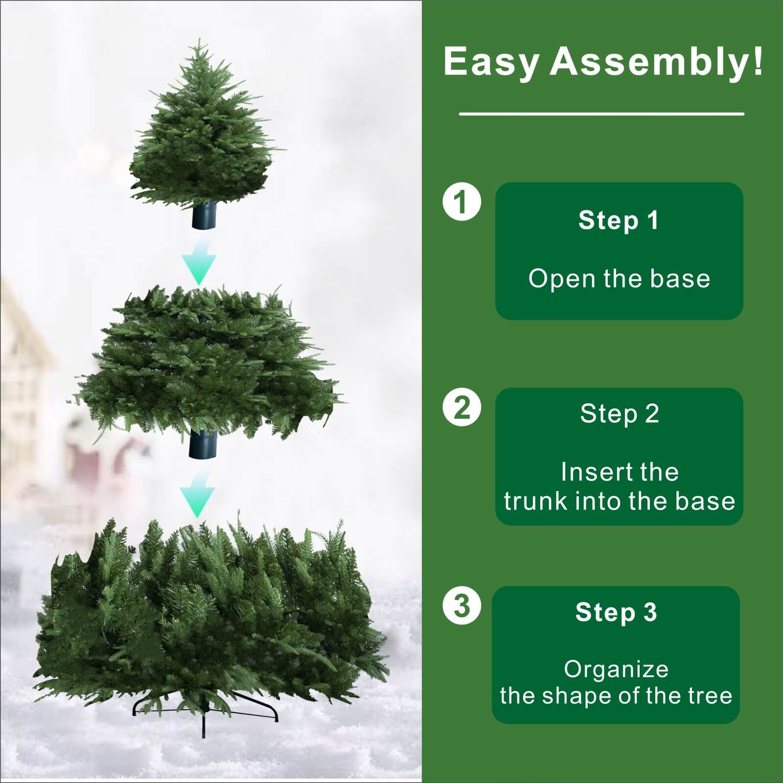 · Realistic evergreen look with dense PVC needles